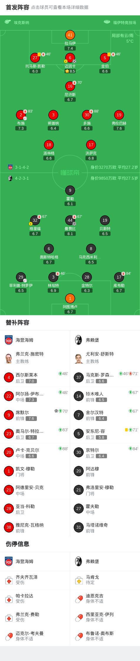 - 海登海姆2-1逆转弗赖堡,席默尔、迈因卡破门